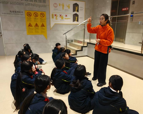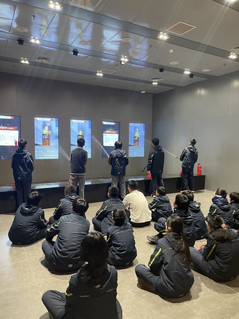 在消防安全学习区,指导老师结合商场、家庭、校园等不同场所的火灾隐患特点,细致讲解了火灾发生时的烟雾逃生技巧、灭火器的正确使用方法,以及如何科学拨打火警电话说明关键信息。同学们认真聆听、积极提问,牢牢掌握了科学的自我防护方法。紧接着,在地铁安全模拟区,大家沉浸式体验了地铁突发停运、车厢起火等险情,在老师的引导下,学会了冷静判断、有序撤离的正确流程,深刻认识到“不慌乱、听指挥”是危急时刻的保命准则。