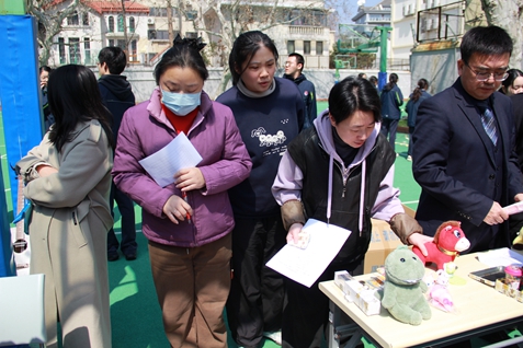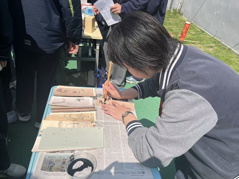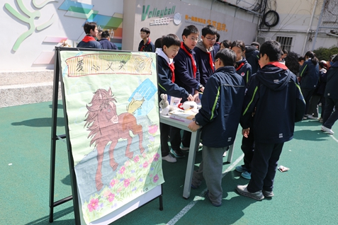 中午时分,义卖活动在春日暖阳中拉开帷幕。平日里挥洒汗水的操场,摇身一变成为温情涌动的“爱心集市”。两校区各班摊位沿活动区域依次排开,五彩缤纷的宣传海报、琳琅满目的义卖物品,瞬间点燃了校园的公益热情。有的班级精心设计了投壶、抽奖等互动游戏,为义卖增添趣味;吆喝声、欢笑声此起彼伏,汇成一首动人的爱心交响曲。各班摊位布置各具匠心,手绘海报创意迭出,学生亲手制作的手工艺品别具特色,摊位名称巧妙融入马年元素,如“爱心驿站”“青春快马”等,既彰显个性又呼应主题。书籍、文具、玩偶、手作……各类物品物美价廉,吸引着师生们频频驻足、慷慨解囊。