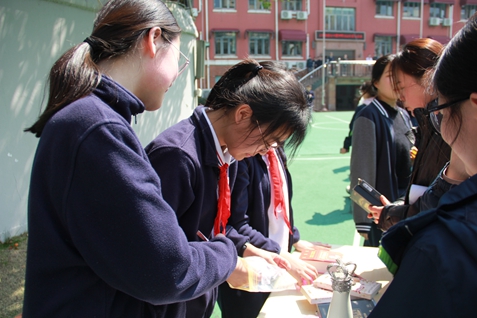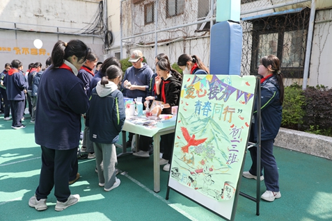 站在摊位前,我忽然明白:义卖的意义远不止筹款本身,更在于我们用行动诠释了“青年担当”。当看到老师们驻足支持、同学们慷慨解囊,我深深感动——原来青春的热忱与善意,真的可以汇聚成温暖的力量。作为即将成年的高中生,我们正学着从被呵护的对象转变为能够帮助他人的人。这份“马不停蹄”的爱心,将激励我在未来的日子里,继续用行动传递温暖,用责任书写青春!——高二(4)班马丽莎