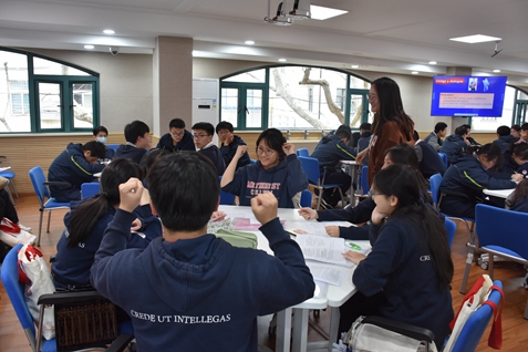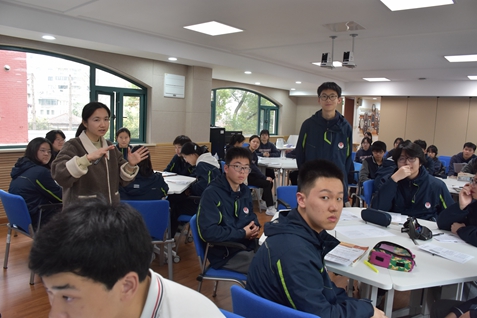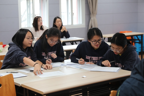 签约仪式后,香港师生走进我校课堂,全天参与了丰富多样的教育教学活动。升旗仪式上,两校师生共唱国歌,聆听了清明主题演讲与诗朗诵,于传统节日文化中感受家国情怀与民族根脉。上午,他们分别进入初中和高中不同班级,听取了语文、数学、英语、历史、道德与法治等国家课程。课堂上,两地学生一同聆听、记录,并在教师引导下开展小组讨论,围绕历史事件、社会现象、文学人物等话题各抒己见,在观点碰撞中加深理解。