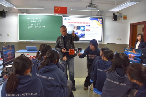 下午的课程则更具校本特色。香港学生先后体验了创客+人工智能、航天与人工智能校本课程,在教师指导下进行简单的编程与操作,感受科技的魅力;随后又参与了烧箔画手工制作,亲手完成一幅以梧桐为主题的工艺作品。