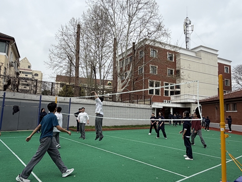 中午,五十四中16位学生代表带着香港学子漫步校园,从校园生活到兴趣爱好,从上海地标到香港美食,话题不断,笑声连连。在阳光下跃动,篮球、排球、匹克球切磋,引起阵阵惊叹。街舞社的即兴舞蹈、信息社的智能模型操控、乐队的现场合奏,香港同学纷纷参与其中,彼此的距离在不知不觉中拉近了。