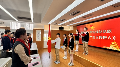 在随后的呼号环节,全体队员在大队辅导员的带领下,齐声高呼:“准备着,为共产主义事业而奋斗!”“时刻准备着!”响亮的呼号声展现了新时代少先队员昂扬向上的精神面貌。
