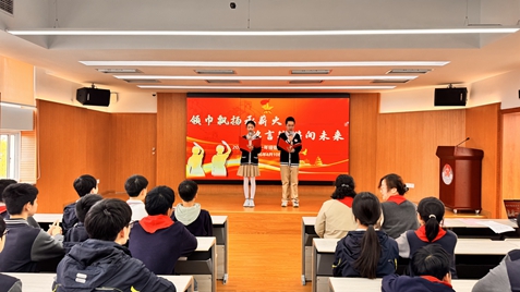 从少先队员到共青团员,是一条光荣的成长之路。仪式第四幕“向往共青团 奋斗圆梦”中,团委副书记诸懿凡老师为队员们带来团前教育宣讲《在奋斗中,美好的心愿接连实现》。